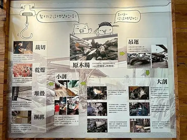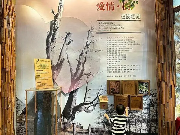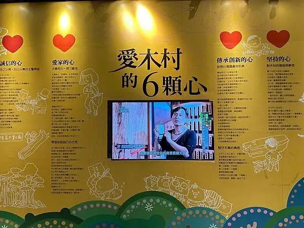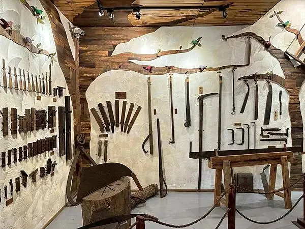 愛木村地方文化館不僅是展示木材知識,也承載了創辦人的故事與精神,這裡特別展示了「愛木村的六顆心」,包括勇敢、誠信、愛家、傳承、堅持、感恩,體現了創辦品牌的初衷與核心價值,在「刀鋸森林」區域,展示了阿里山砍伐作業所需的各種伐木造材刀鋸,以及製材木工所需的工具,另外,遊客也可以瞭解到過去原木進行大剖作業時,定尺師父必須依靠手語來向鋸尾師傅傳達訊息的歷史,這些細節都充滿了人文的溫度與木藝傳承的意義,館內還有遊客休憩區,放置了幾款益智類木製玩具,讓遊客可以動動手、動動頭腦,最後,在文創小舖中,販售著多樣化的木製商品,門票的50元抵用券可以用來購買伴手禮,為嘉義的木藝之旅留下美好的回憶。