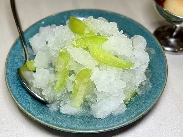 最後在甜點的收尾上,富錦樹也提供了充滿台式懷舊風味與創意的新品,例如「芒果青」俗稱情人果冰沙,價格是300元,一份的份量大概夠4人享用,這道冰品酸爽消暑,具有去油解膩的效果,是帶有台味的懷舊冰品,而101專屬甜點「紹興焦糖布丁」價格是280元,濃郁的蛋香結和了紹興奶油,是一款帶有微醺感的創新甜品,為整場精緻的台菜饗宴畫下充滿優雅與創意的句點,總體而言,富錦樹台菜香檳以其走高品質精緻化台菜路線、道道有水準的好菜以及一流的服務,成為台北信義區推薦給大家的高檔聚餐選擇。