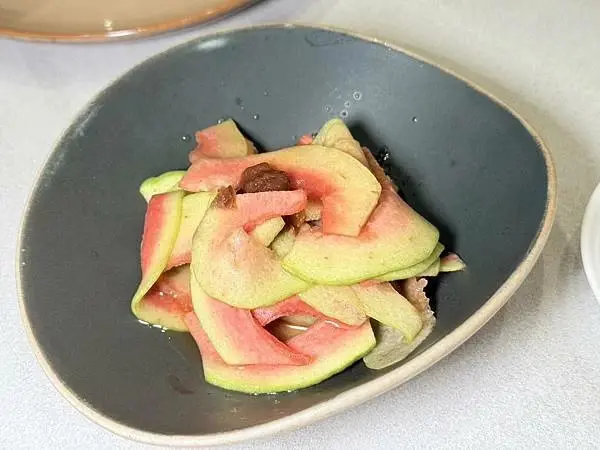 富錦樹的招牌菜色,每一道都展現了做工的紮實與用料的實在,其中,「特調白斬雞」是一道獲得全桌人一致好評的必點菜色,店家採用舒肥法烹調仿土雞腿,這種烹調方式讓肉質軟嫩到不行,卻又帶有迷人的彈力,而且店家非常貼心,已將雞肉去骨,讓顧客可以方便食用,白斬雞的靈魂在於那紅紅火火的靈魂醬汁,酸中帶辣的風味超級下飯,堪稱下飯神器,另外「樹子水蓮」也是富錦樹的招牌菜,大火快炒後的水蓮清爽脆口,搭上肉絲與俗稱「破布子」的樹子,滿口盡是鮮爽甘甜,是平衡重口味餐點的絕佳選擇。