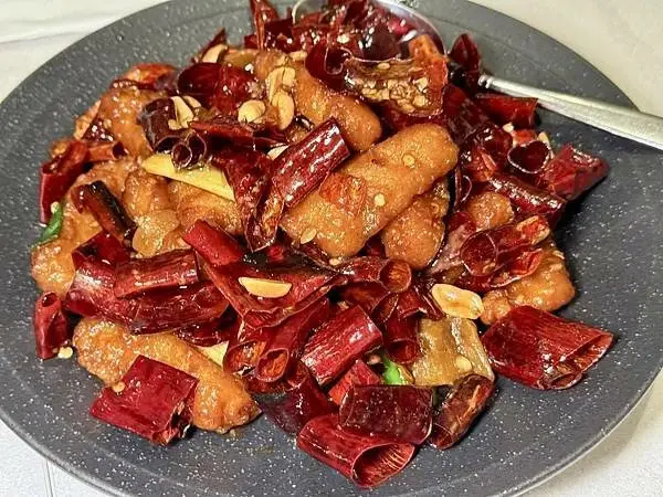 富錦樹台菜香檳101店特別推出了幾款限定料理,展現了店家在創新上的企圖心,其中「油淋蟹黃麻婆豆腐」價格是2800元,是融合了海味與川味的創新川菜,將蟹香與麻香相映成趣,這道料理使用了手剝蟹肉和濃郁的蟹黃加入麻婆豆腐中,每一口豆腐都蘊含鮮明的螃蟹鮮甜和濃濃蟹黃風味,最後還用蟹殼煉製的蟹油淋在表面,讓鮮香層次欲罷不能,絕對是必吃的奢華創新菜,另一道「宮保土魠魚」價格是880元,同樣是101店限定,新鮮土魠魚搭配季節水果入菜,大火快炒爆香後,魚肉表皮酥脆,內部仍保有魚肉的多汁鮮嫩,非常適合當作下酒好菜。