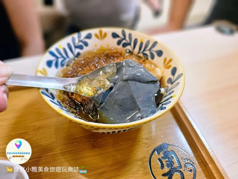 除了炸物,拱天宮周邊的傳統點心也同樣精彩,「陳媽媽艾草粿」就位在拱天宮出來的大街上,距離廟口僅有幾步路程,店家強調使用的是自家種植的艾草,因此草香非常濃厚,粿的口感Q中帶有柔韌,內餡飽滿紮實,有葷素兩種選擇,是傳統的在地美味,芋頭控則不能錯過他們的「芋粿巧」,內含整塊綿密的芋頭,搭配油蔥與小蝦米的鹹香,吃起來層次豐富,另外,在拱天宮前方,有一家名為「勇心豆花」的店家,這間店名是由媽祖親自賜名,光是這份神明加持的背景,就讓人多了幾分信任感,這裡的「熊貓嫩豆花」是黑白雙色,口感細嫩如雲,冷藏後吃起來清涼消暑,配料可以自由選擇,而且給料大方,續冰和續糖水的貼心服務,也讓這份豆花顯得物超所值。
