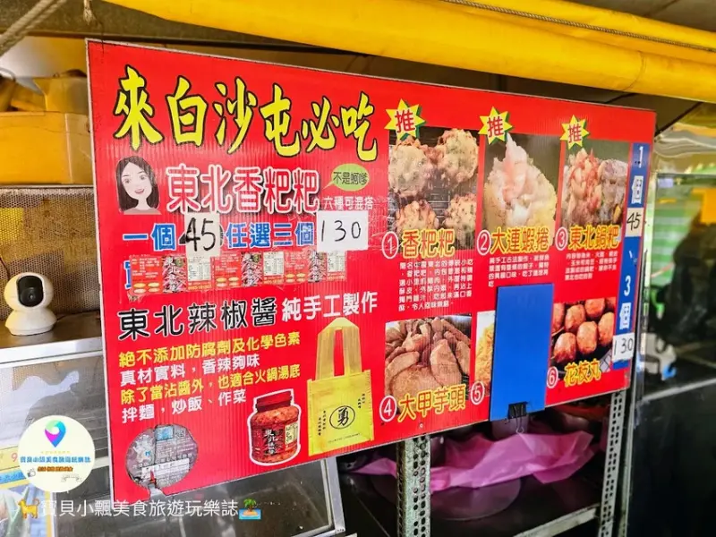 拱天宮周邊不只是信仰核心,更是聚集了各種美食的集散地,這裡的小吃種類繁多,從炸物、甜點、粿類到古早味飲品,絕對能讓顧客吃得心滿意足,在眾多小吃中,「東北香粑粑」的人氣超高,這處小攤就位於拱天宮的正後方空地,每一份香粑粑都是現點現炸,顧客光是排隊就能聞到撲鼻而來的香氣,香粑粑吃起來外酥內嫩,內餡包著蔥花與豬肉,口感就像是進化版的蔥油餅或蚵嗲,炸得恰到好處且完全不油膩,如果再搭配招牌的「東北辣椒醬」,風味更是絕佳,會讓人一吃就上癮,同攤位還有「大連蝦捲」,比台南蝦捲更具份量,咬下去Q彈的蝦肉會在嘴裡彈跳,另外「東北鍋粑」則有炸飯糰的風味,外酥內Q,米香濃郁,是許多在地人從小吃到大的兒時回憶。