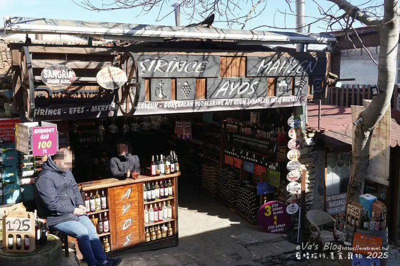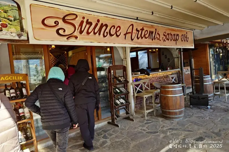 在 席林傑(Şirince)小鎮,我們造訪了位於 Artemis Restaurant 內的 Şirince Artemis Şarap Evi,這是一家知名的 水果酒與在地葡萄酒專賣店,店內木質櫃架整齊陳列各式 石榴酒、藍莓酒、水蜜桃酒、櫻桃酒、冰酒 等水果酒,空氣中彌漫著誘人的果香