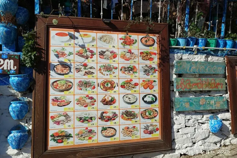 雖然我們這次沒有進去用餐,但 Şirincem 的色彩與氛圍完美呈現席林傑的藝術與鄉村風格,整片藍色建築與裝飾,讓人彷彿走進阿凡達的奇幻世界,光站在門口拍照就非常療癒,如果有時間停留,不妨在這裡小坐片刻,享受一頓道地土耳其美味