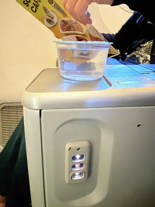 至於機上位子,就沒有像一般的航空公司有提供毛毯被子以及小枕頭。一上機,空服員就送上一小罐的飲用水。