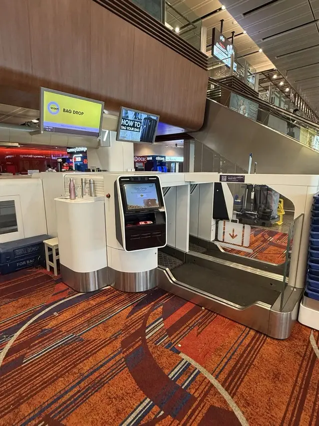 Scoot Plus 酷航+在新加坡樟宜機場的報到櫃檯是在第一航廈第三門,第一航廈就在星耀樟宜 Changi Jewel 對面,報到櫃檯在第7行,48小時前開放網上報到,抵達機場時只需要在櫃檯影印出行李吊牌以及登機證就可以了,自行把行李吊牌貼在寄艙行李上再自行寄艙。登機1小時前前往登機門準備過安檢登機就可以了。