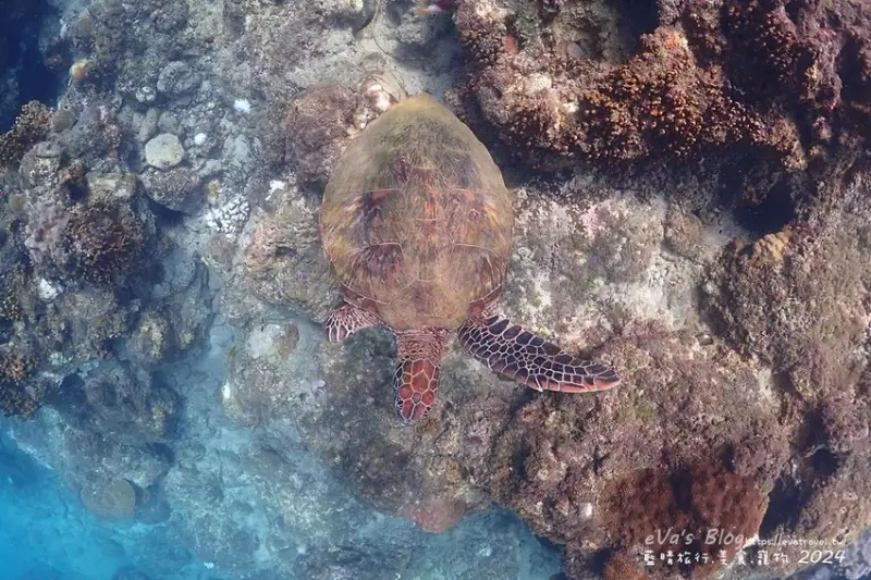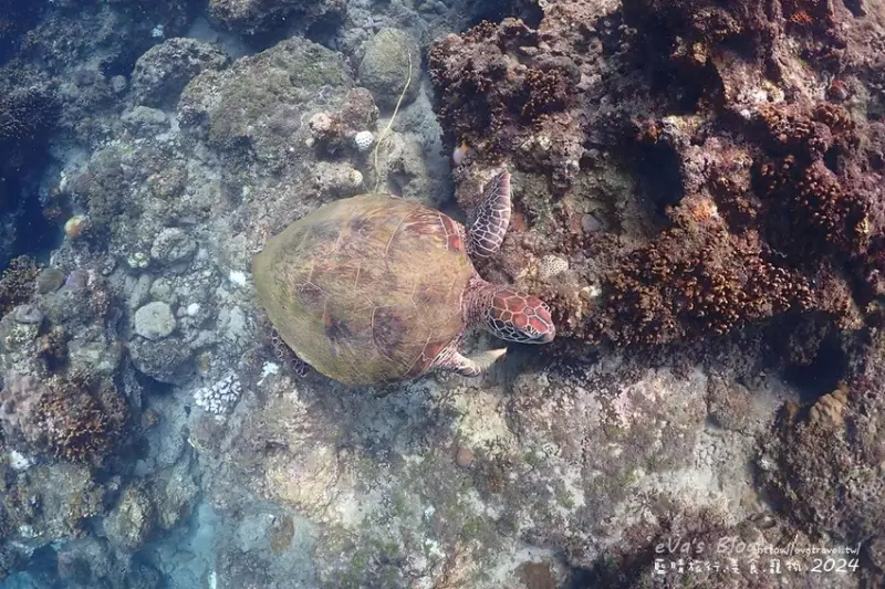 小琉球真的是一個 超容易遇見海龜 的地方呀!這次浮潛的時候,我們就看到好幾隻海龜在眼前悠游、覓食,這裡一隻、那裡一隻,幾乎到處都能發現牠們的身影,這是我第一次在海裡親眼看到海龜,近距離觀賞真的太療癒了~