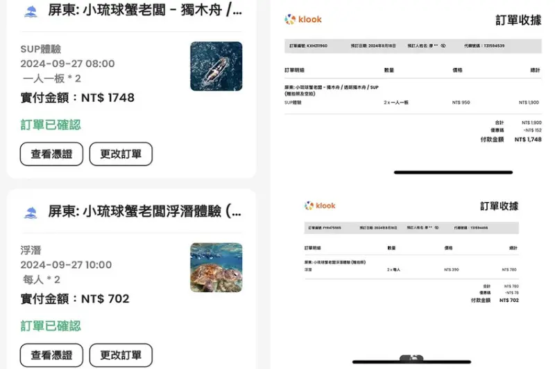 我們這次體驗的兩項活動——SUP立槳與浮潛,都是在 Klook 客路 上線上購票預約完成的