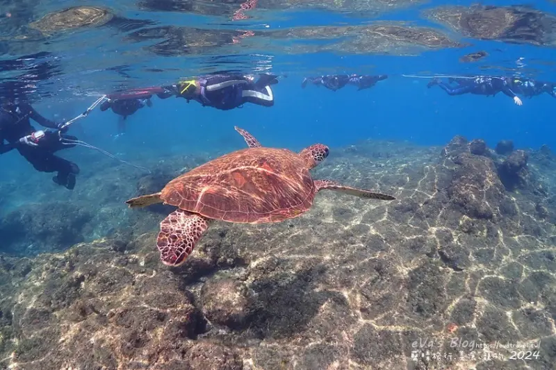 清澈見底的海水裡,礁岩、魚群、海底生物全都清晰可見,彷彿走進一座夢幻的海底花園,教練也會在水中輪流幫大家拍照留念,把每一個與海龜共游、與海洋相遇的瞬間都記錄下來