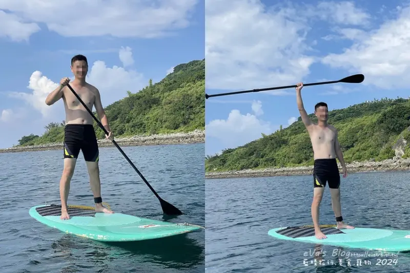 不過這次在 小琉球海面上進行 SUP 立槳 的感覺與日月潭完全不同,日月潭水面平穩、適合初學者;而小琉球屬於海域,水面會隨著浪起伏,板子也更搖晃,建議如果容易暈船,出發前可以先吃暈船藥,玩得會更輕鬆愉快