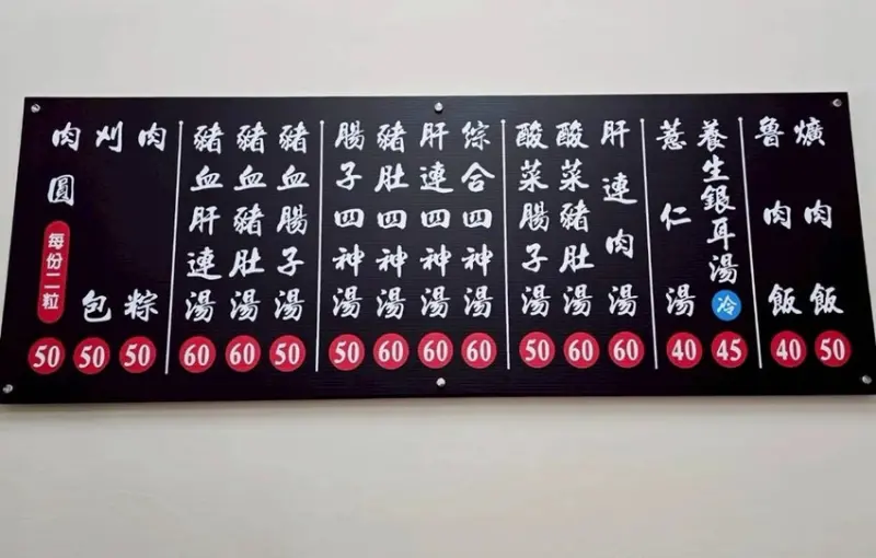 湯料則包含肝連、豬肚、和腸子,所有內臟都處理得非常乾淨,沒有多餘的油膩和雜質。豬肚Q彈、腸子軟嫩,完美襯托出四神湯的獨特風味。店家還能依個人喜好選擇單點豬腸或豬肚,這點超加分!