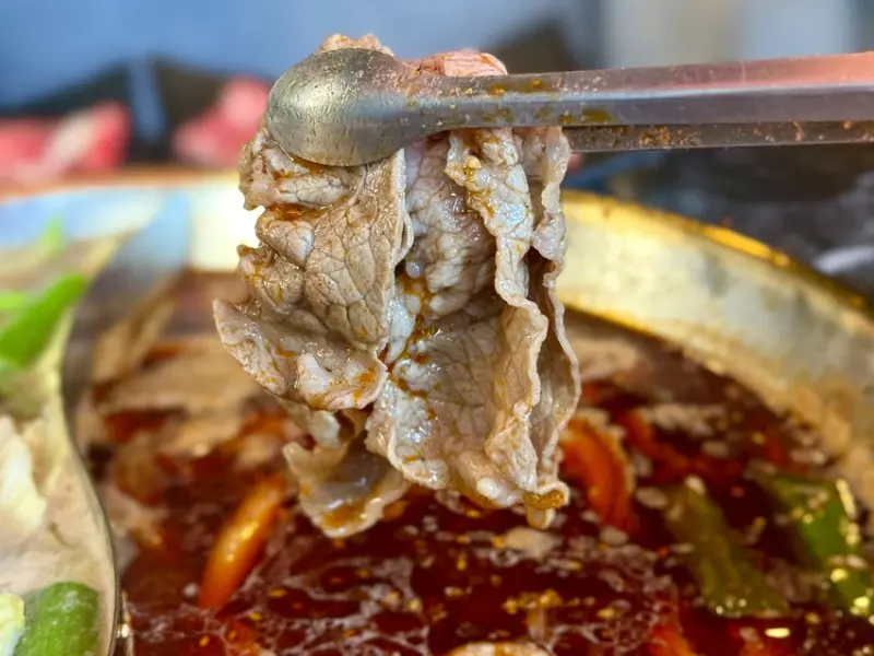 全台唯一將經典酒家菜改良為火鍋湯底!湯頭融合了魷魚、螺肉的鮮美和蒜苗的濃郁香氣,喝起來鮮甜甘醇、暖胃銷魂,用來涮肉更是別有一番風味,是老饕們極力推薦的必點,麻辣紅湯香氣十足,麻而不燥,辣度大約是中辣以上,鍋底的鴨血豆腐給的好大塊又入味,可以無限續