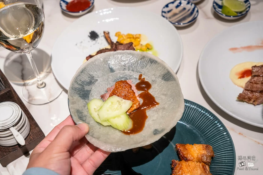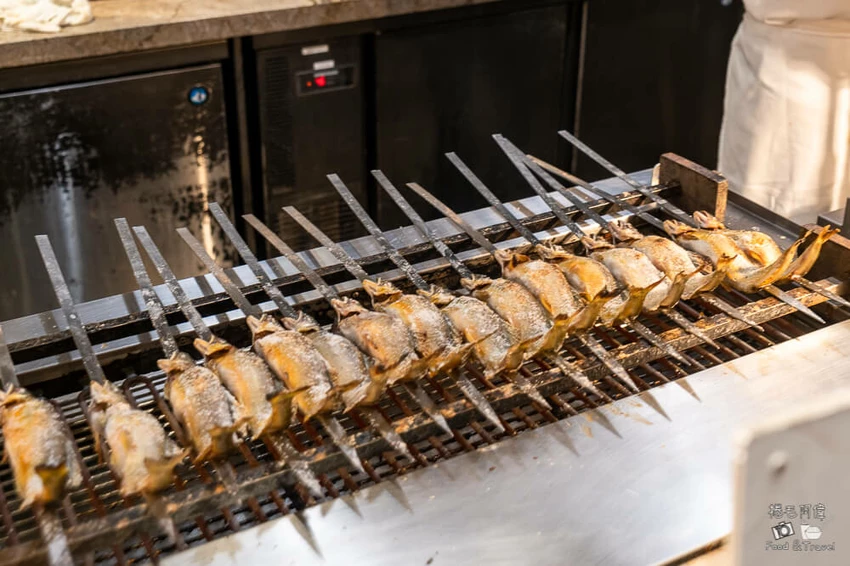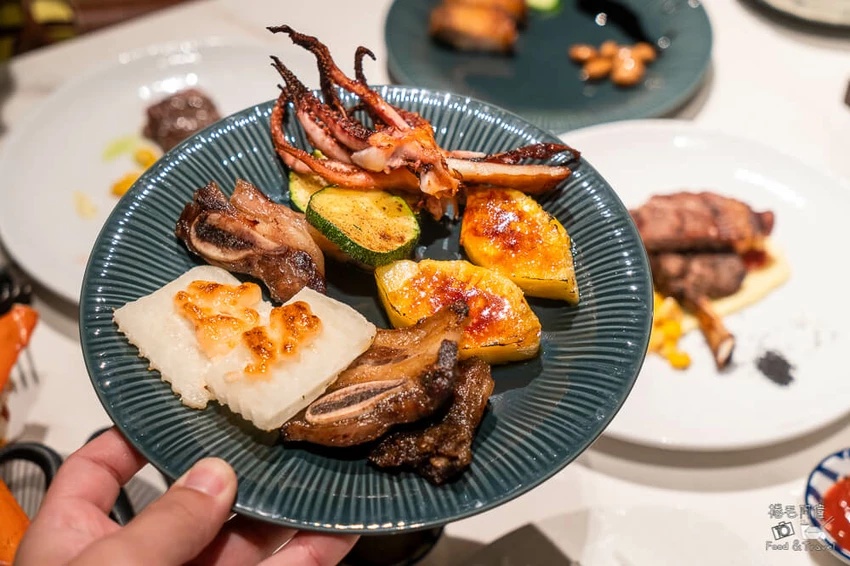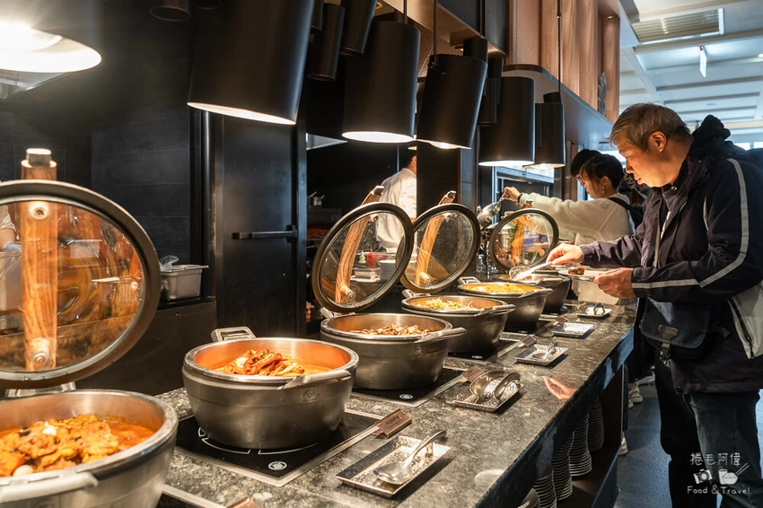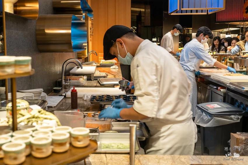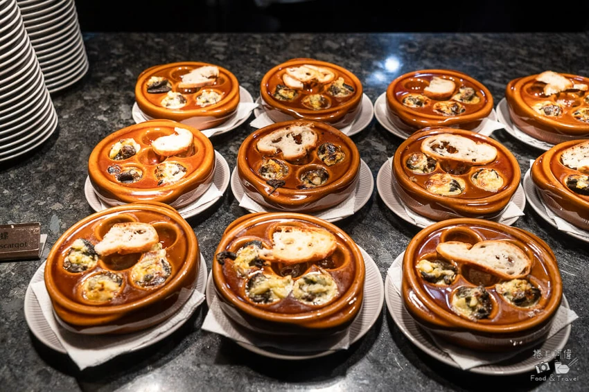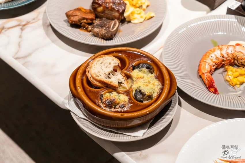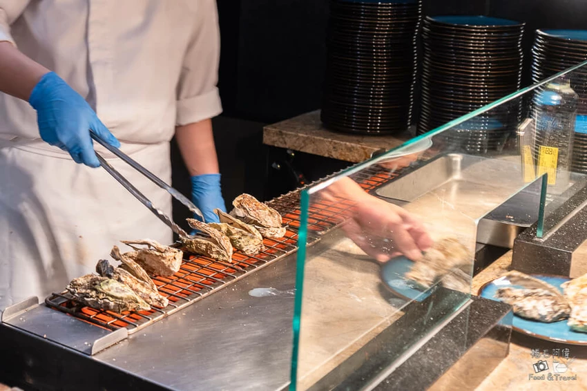 島語自助餐廳特別規劃了多達8大主題餐區,並將美食與餐酒的搭配視為一大特色,例如日式料理區會搭配清酒,西式料理搭配紅酒,而海鮮則搭配白酒等,讓顧客在品嚐不同主題料理時,都能有最合適的飲品搭配,在烤物區的料理非常精彩,有現烤香魚和日本生蠔等,尤其日本生蠔烤好後,服務人員還會噴上琴酒,藉此襯托生蠔的鮮味,這道烤生蠔因此成為非常搶手的人氣美食,雖然排隊人潮多,但許多吃過的人都認為排隊是值得的,炸物區則提供了炸牡蠣、章魚燒和炸蝦天婦羅等日式炸物,在中式料理區的選擇也很多元,例如烤鴨選用契約合作的櫻桃鴨,烤出的京式片皮鴨比一般的鴨肉大隻,這裡也能吃到桶仔雞等傳統美食,另外還有法式焗烤田螺,田螺肉質Q彈美味,搭配焗烤起司更能增添香氣,烤鴨的皮Q多汁,鴨肉鮮美搭配小黃瓜一同享用,整體吃起來非常清爽。