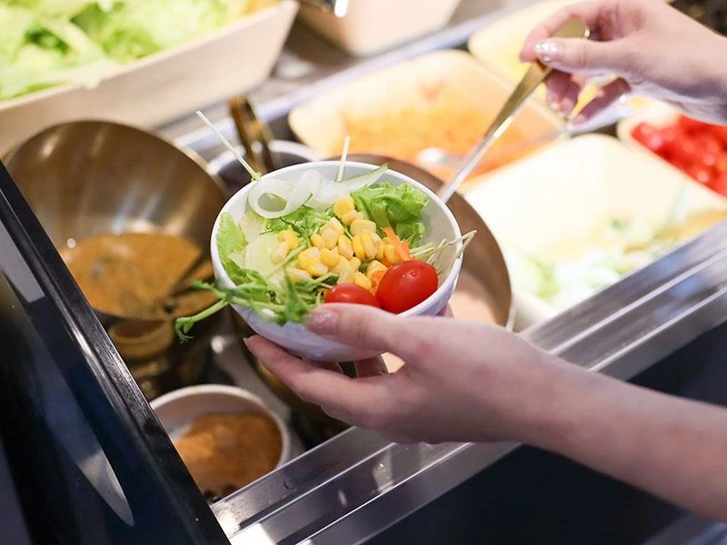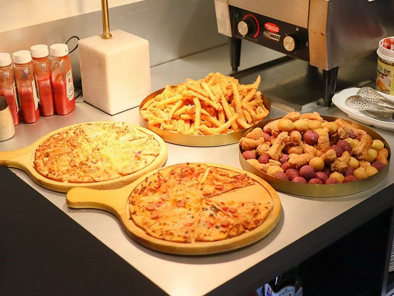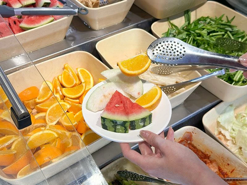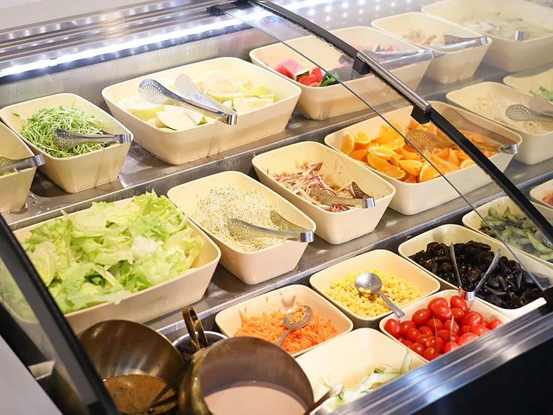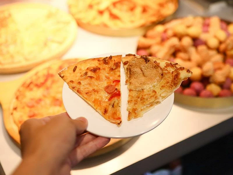 牧樂牛排的自助吧內容被形容為太誇張,成功刷新了平價牛排自助吧的等級。在沙拉區,提供了多種生菜沙拉搭配選項。熟食區的選擇更是豐盛,除了有烤麵包、現烤披薩,還有地瓜球、脆薯和炸雞塊等炸物選擇,滿足喜歡多樣化小點的顧客。特別的是,披薩每次出爐的口味都不一樣,甚至有拿到棉花糖口味,深受小朋友的喜愛。熟食區還提供了麻辣鴨血和豆腐,讓愛吃辣的顧客可以任你吃,不必擔心份量不足。