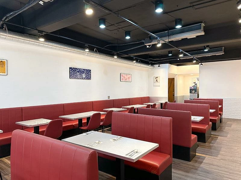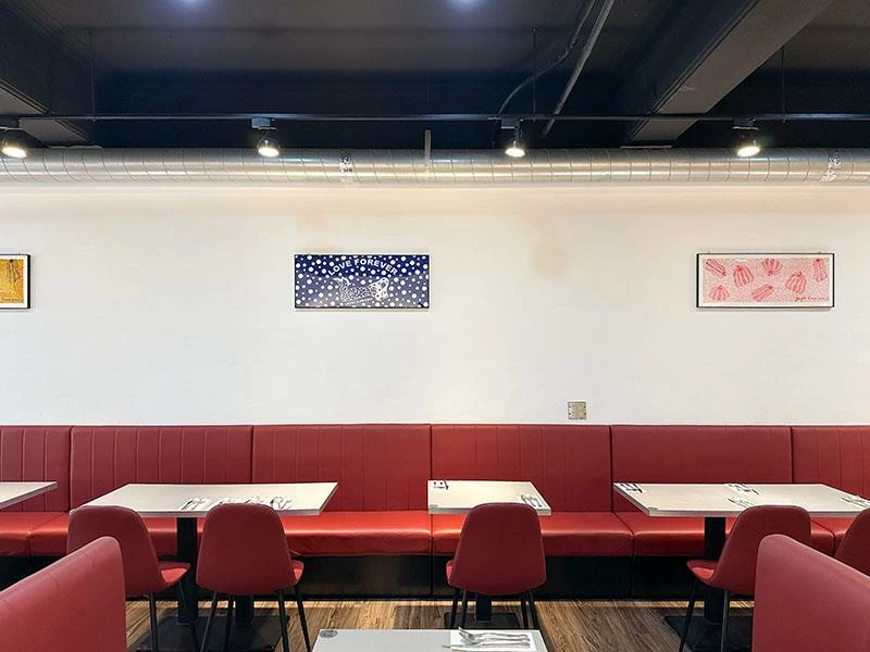 在甜點飲料區,牧樂牛排的選擇同樣豐富,顧客可以享用到多種飲料、咖啡,而冰品甜點就有冰淇淋、冰棒和霜淇淋等多樣化選擇。店內裝潢以乾淨留白為基調,搭配舒適的沙發座椅,牆上掛著奈良美智的畫作,整體氛圍簡單卻帶點藝術感。店內的細節設計也考慮得非常周到,例如用餐區設有洗手台,對於帶著小朋友來的家庭來說非常貼心。牧樂牛排就像把小型Buffet和牛排館結合在一起,讓大人和小孩都能找到自己喜歡的餐點。只要點一份主餐,就能盡情享用這麼豐富的自助吧內容,讓這份超值感成為新竹聚餐的首選推薦。