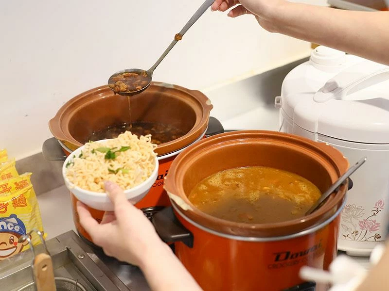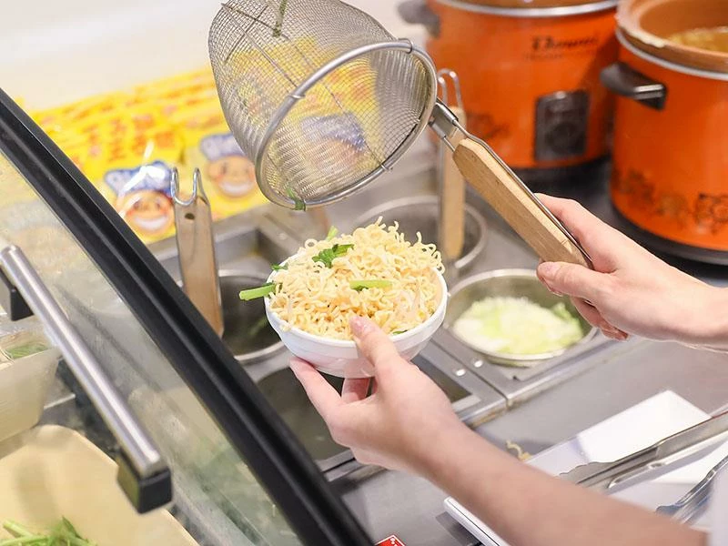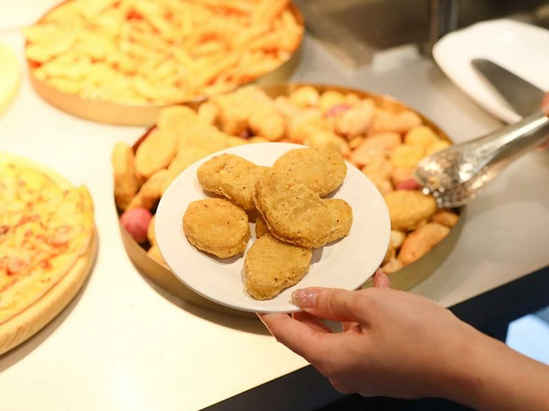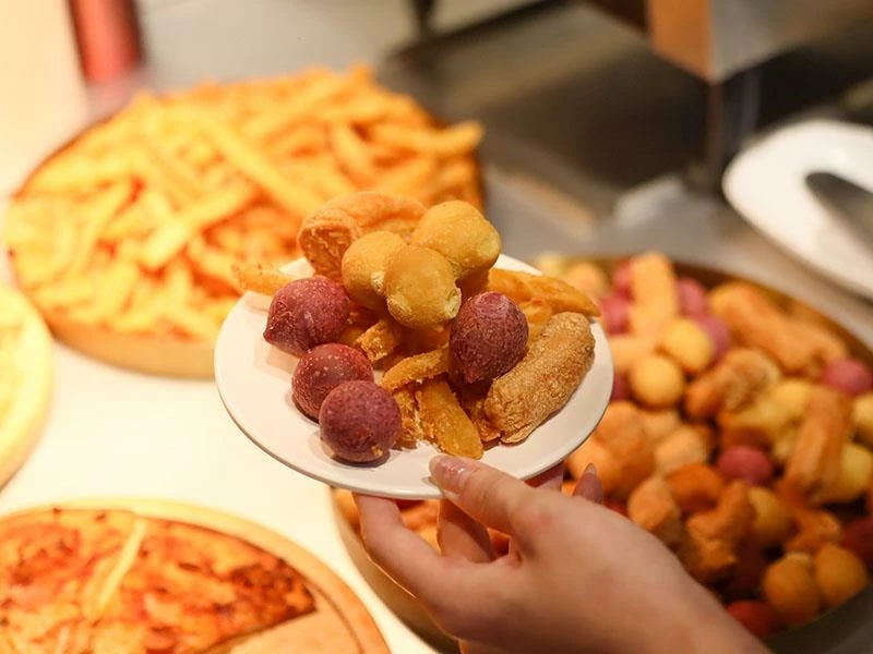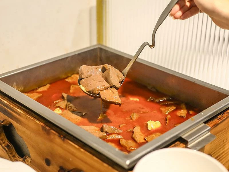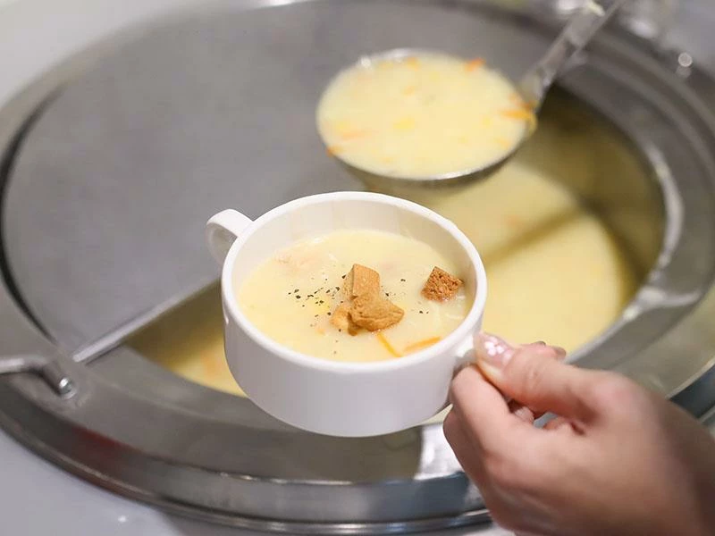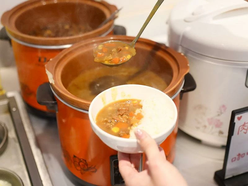 在主食區的豐富程度讓人感到驚訝,牧樂牛排不僅提供了白飯可以無限續,還能搭配濃郁的滷肉醬汁,製作出美味的滷肉飯。此外,這裡也提供了咖哩飯的選擇。最特別的設計是自助煮麵區,顧客可以自己煮麵條並加入青菜,煮好後再淋上滷肉醬汁,甚至可以加點辣醬,這個自製的麵食體驗,可媲美高檔Buffet提供的切仔麵,讓顧客能夠依照自己的喜好,創造出獨一無二的主食。湯品方面,玉米濃湯濃郁香甜,很受顧客歡迎。