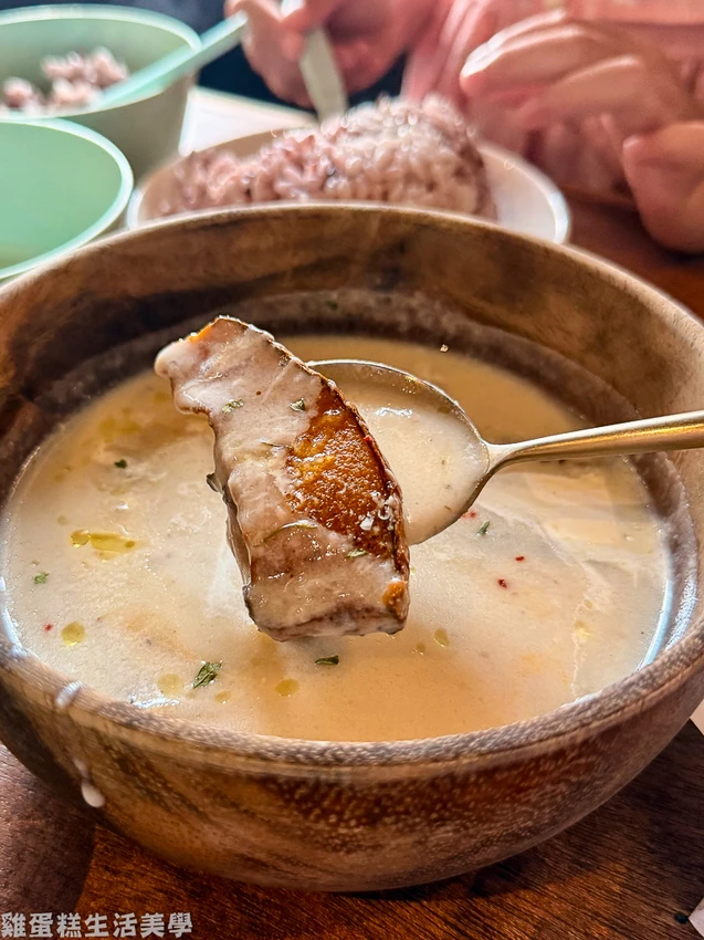 ▲蛤蠣巧達濃湯 100元:濃湯有加入橄欖油、鮮奶油,湯頭勾芡程度適中,喝起來有濃郁奶香,配料除了滿滿的蘑菇和蛤蠣外,還有花蓮特產花蓮薯,完全融入當地特色食材。