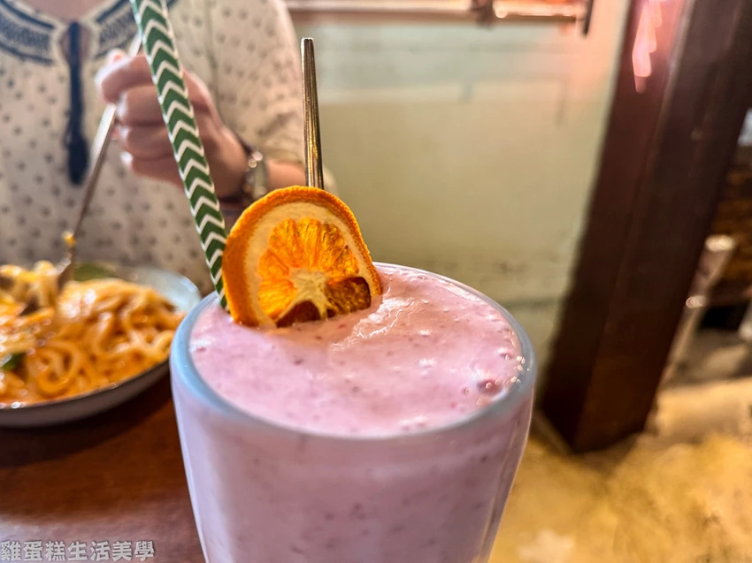 ▲冰野莓果昔 185元:使用鳳梨 、蘋果、草莓、蔓越莓、藍莓打成果昔,有著濃稠細緻的口感並伴隨濃郁果香,甜度冰塊是固定無法調整。