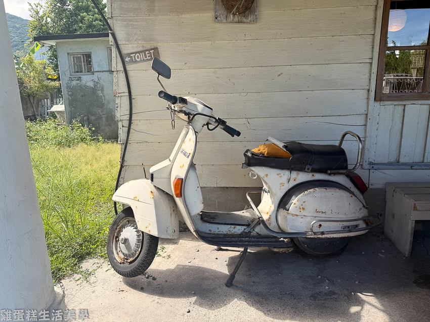 ▲餐廳左右各停放了一台骨董機車,門口還有鐵製燒木炭的暖爐,現在真的很少見到了。