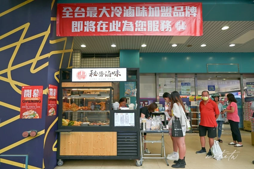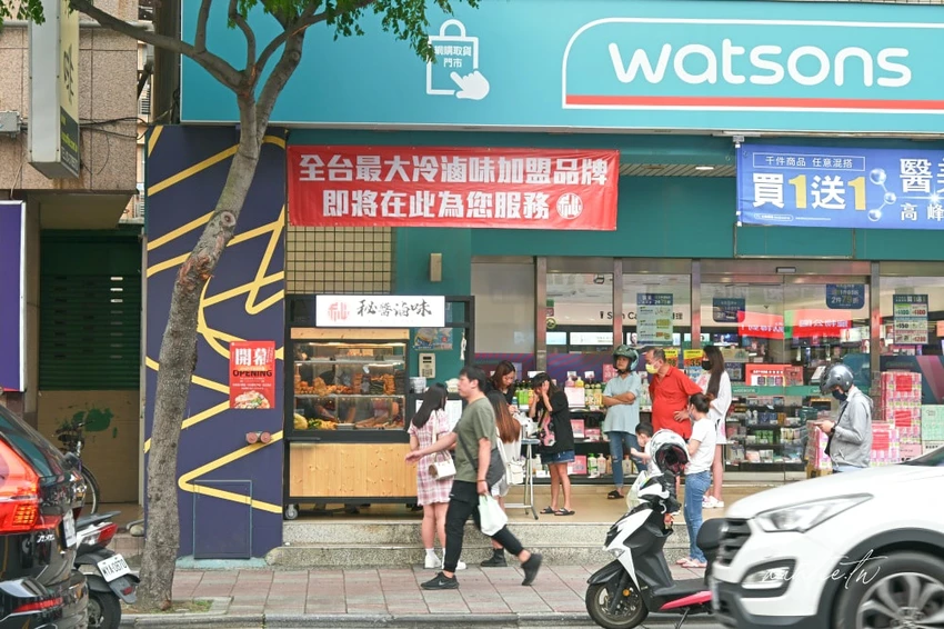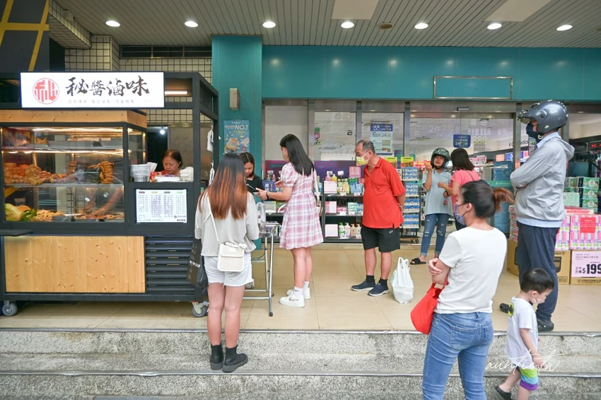 這次跟朋友約好下午五點多來「秘醬滷味 桃園龍安店」買晚餐,停好車走到攤位對面路口就已經看到排隊人潮,攤位就在屈臣氏門口。