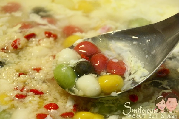 這道五行酒釀湯圓,無疑的是今晚最特別的菜色了