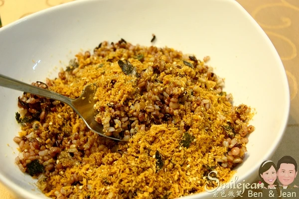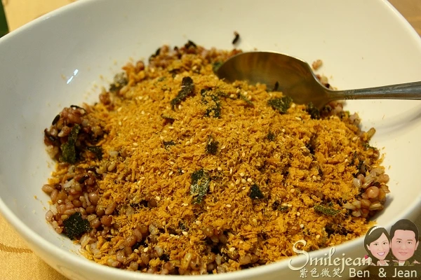 上面還加了素肉鬆和海苔的什穀雜糧飯