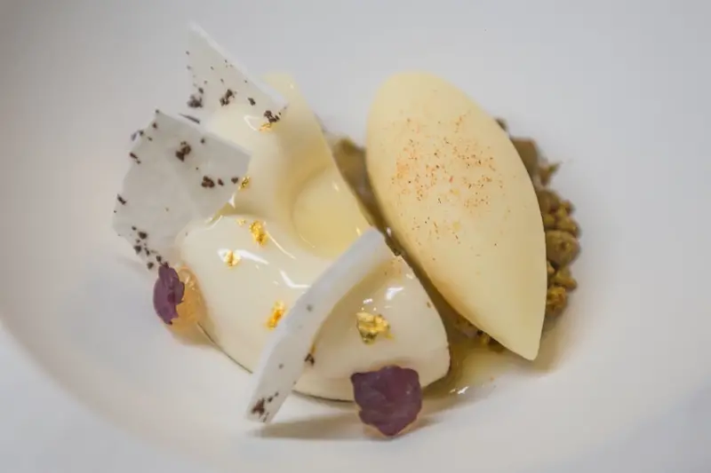 ▲酸甜的鳳梨與輕盈的馬琳糖搭配野薑花的細膩香氣,帶來熱帶風味的華麗收尾。