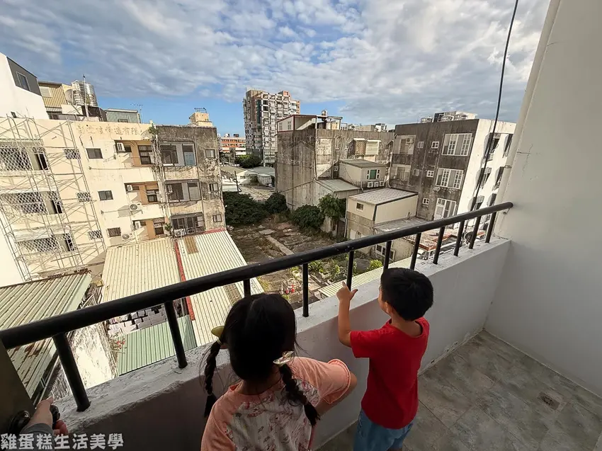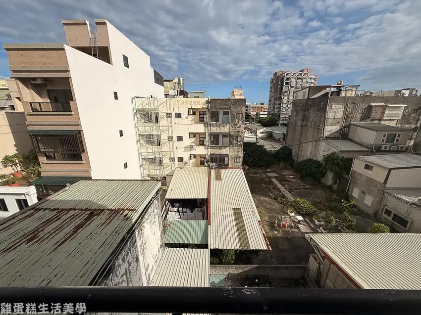 ▲窗外有個小陽台,陽台還蠻大的,但樓層不夠高看出去的都是鐵皮屋的風景。