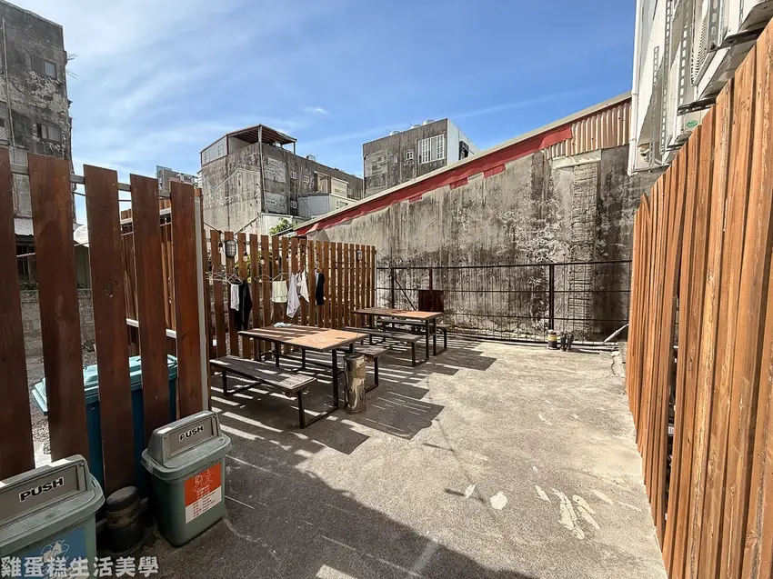 ▲廚房外有個戶外座位區,是曬衣場+抽菸區的所在地。
