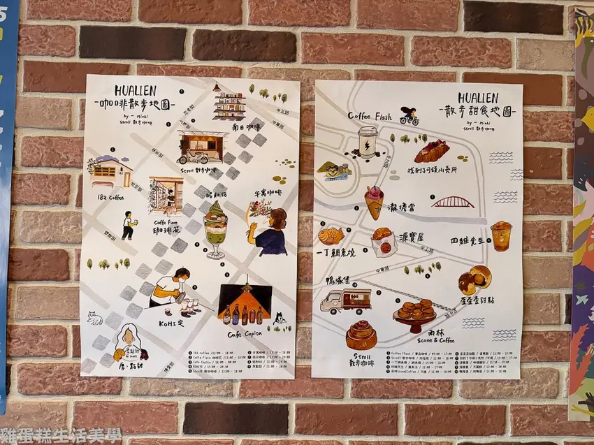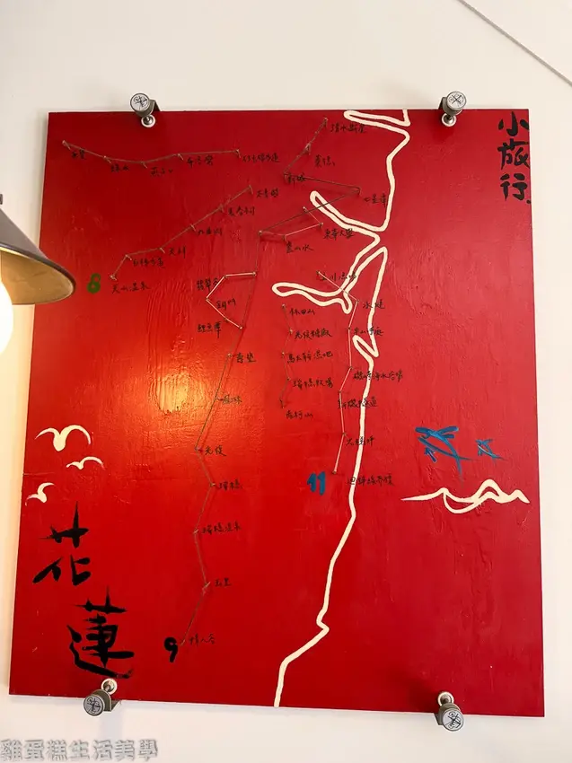 ▲牆上有花蓮的散步地圖和私房景點,沒有做功課的漫遊也是很放鬆的旅遊方式。