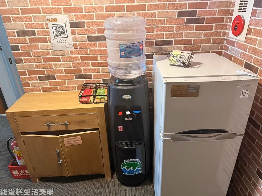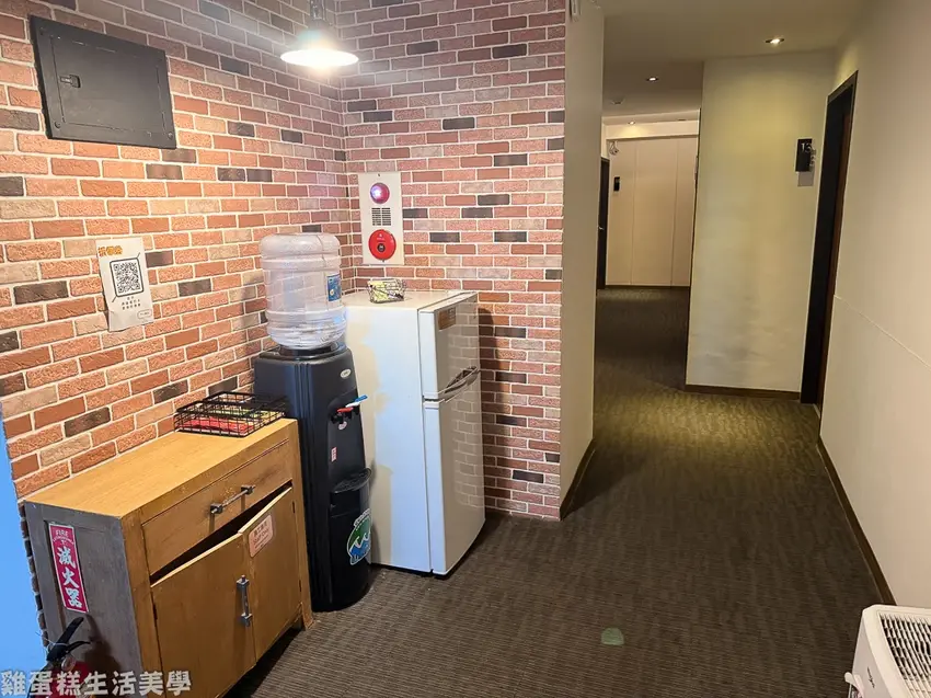 ▲樓梯間有冰溫熱開飲機和冰箱,開飲機旁還有免費茶包。