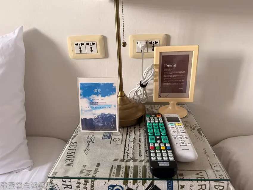 ▲兩張床的中間有一盞檯燈,牆上有充電孔方便手機充電。
