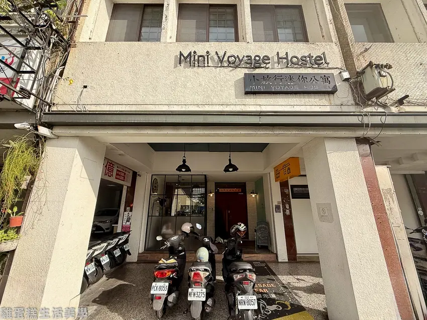 ▲小旅行迷你公寓外觀為白色獨棟老宅,黑底白字的招牌很有質感。