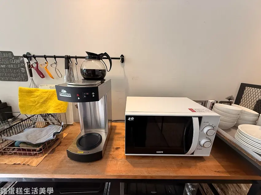 ▲後方是簡易廚房的空間,有冰箱、開飲機、咖啡機、烤箱,咖啡機還有免費的咖啡可以享用。