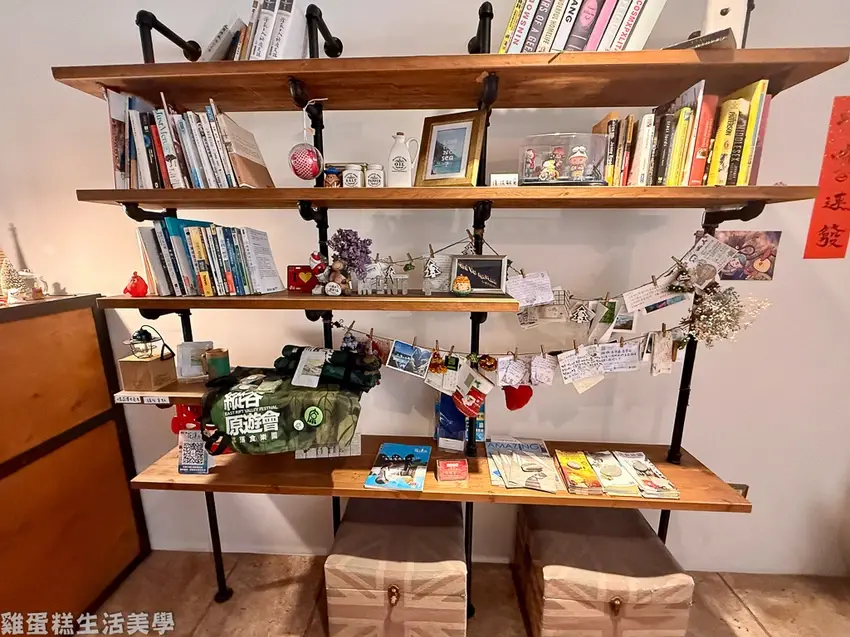 ▲書架上有許多旅遊美食相關書籍,也有花蓮旅遊的資訊都可以翻閱瀏覽。
