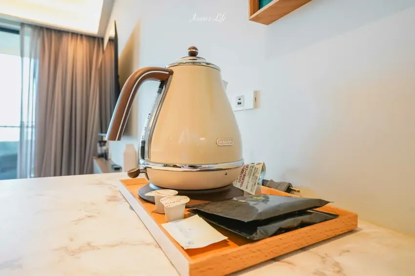 放在中島上的熱水壺也與一般商務飯店不一樣
