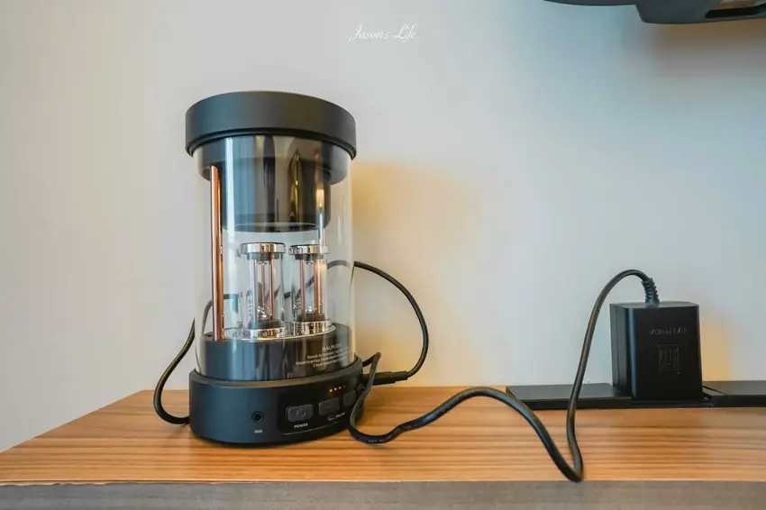 電視下方還有個真空管造型的藍芽音響,連上自己手機