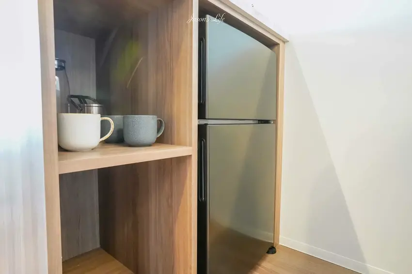 一樓有行李存放區、飲料販賣機、飲水機和製冰機