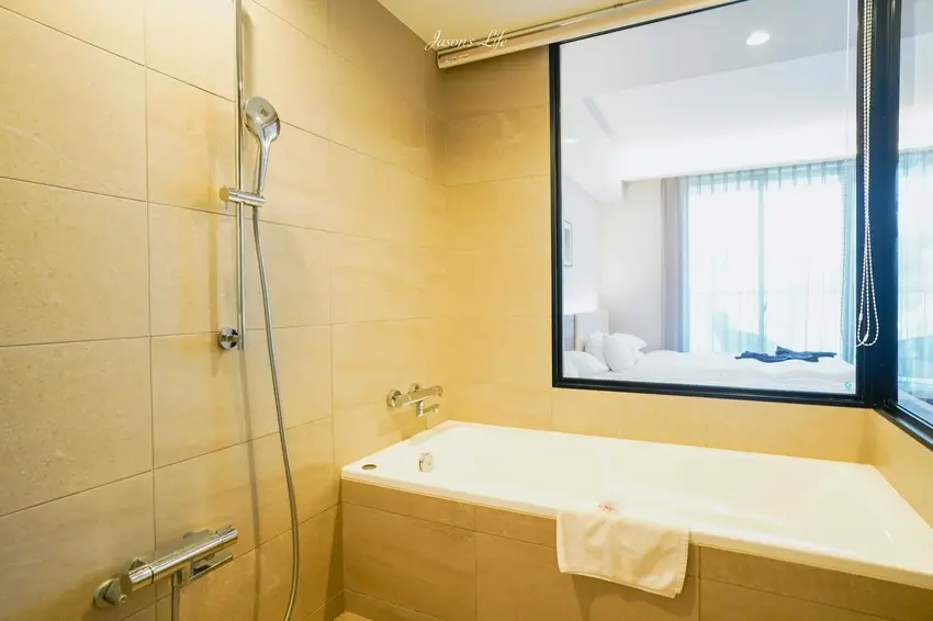 另外淋浴空間非常的大,一旁就是長型浴缸,很舒服