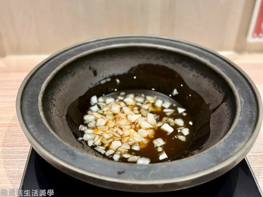 ▲石頭鍋:鍋底先放入熱油和洋蔥丁爆香,再倒入清澈見底的湯底,等湯滾了就可以放入食材囉!湯頭走的是清淡路線,沒有我期待爆香過的焦香。