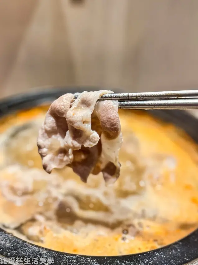 ▲豬肉是帶油花的部位,紋理清晰色澤鮮紅,肉質極為軟嫩不乾柴,雖然是平價火鍋但肉類品質相當不錯。