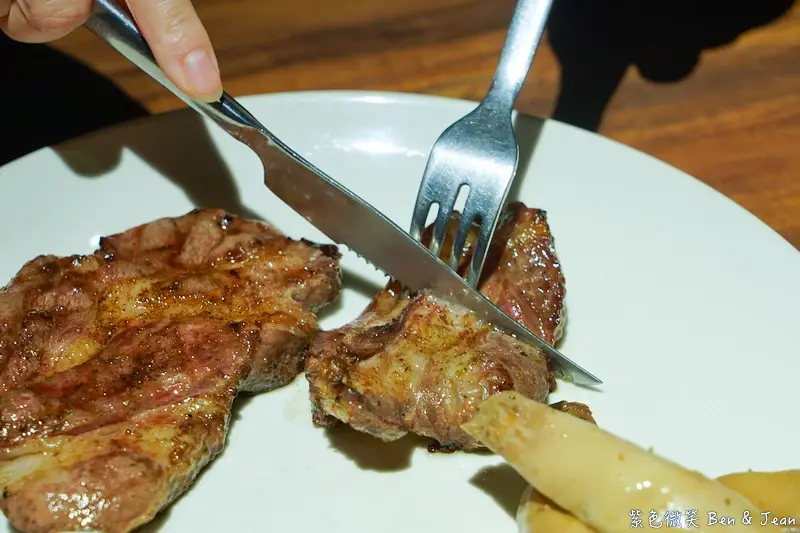 我們有先切開一點來吃吃看,牛肉炭烤後內部仍保持軟嫩多汁,而且入口明顯的有感受牛肉的炭烤香氣