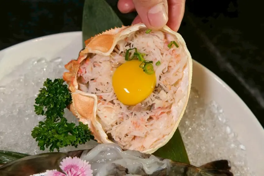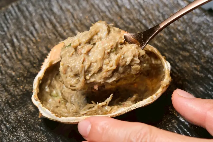 ▼來這裡絕對不能錯過海鮮品項,因為就在高雄港附近絕對新鮮,其中超特別的極品甲羅燒,是專屬高雄海洋店限定,會有蟹膏、蟹肉、鵪鶉蛋、細蔥,需要一邊烤一邊攪拌,整個提出蟹膏的飽滿甜味,每一口都好濃好爽!
