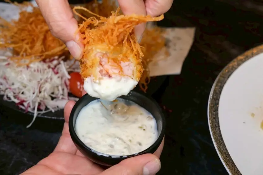 ▼充滿創意的火焰塔塔蝦球,外皮炸到超級酥脆,沾上濃郁塔塔醬更夠味,裏頭口感飽滿彈牙,充滿鮮甜的蝦味!