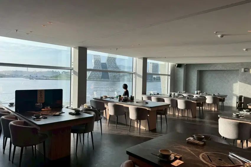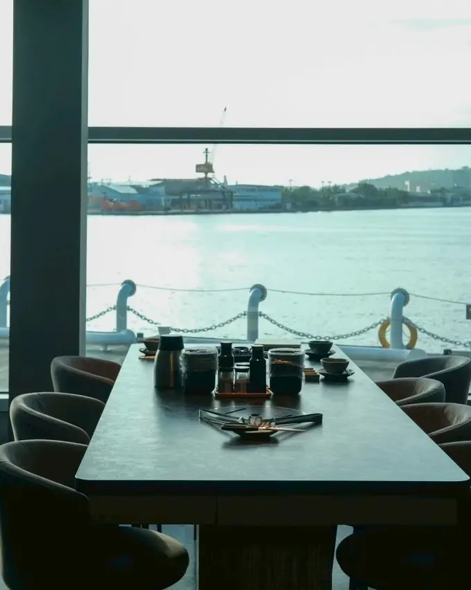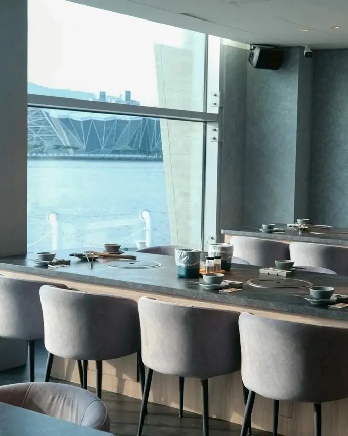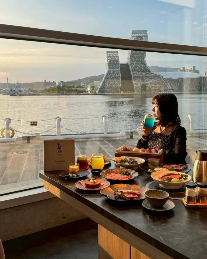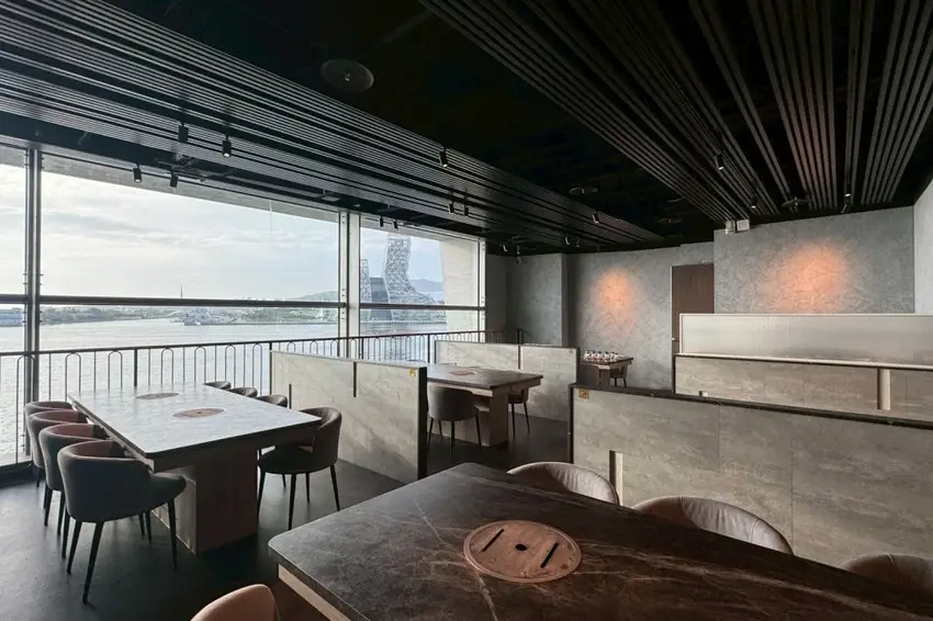▼【1928燒肉總鋪 高流海洋店】用餐環境超級漂亮,從窗戶就能看到絕美海港景色,尤其是日落是還有夕陽落下,真的十分浪漫,有放煙火的日子也能直接看到!