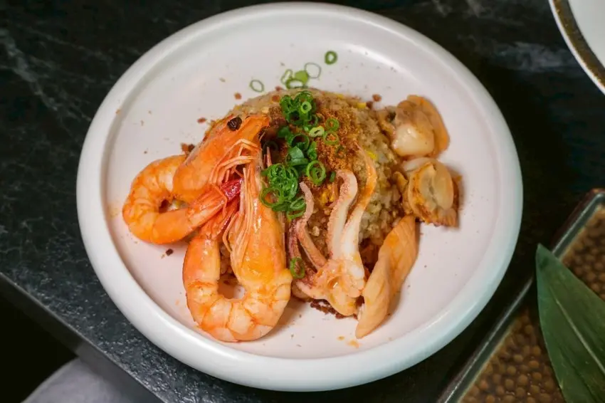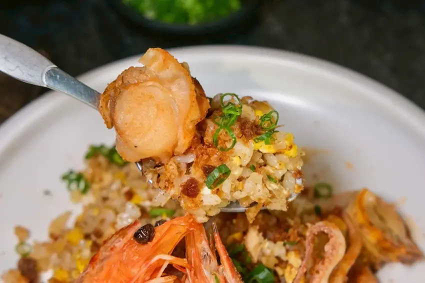 ▼看起來就很讚的烏魚子海鮮拌飯,可以吃到烏魚子、扇貝、鮮蝦和逼逼波波鮭魚卵,伴隨著粒粒分明的米粒很過癮!