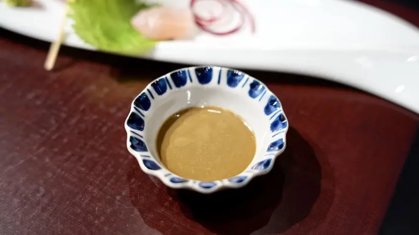 師傅精湛的刀工切成波浪型狀,增加接觸面積,可以更好地吸收醬汁,搭配主廚特製的開心果醬油,有堅果的香氣,但又很清爽,非常美味的組合。
