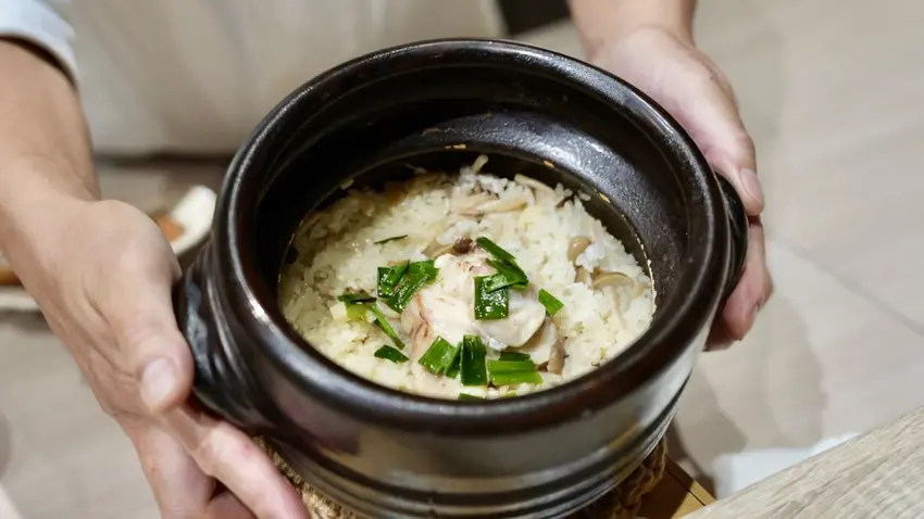 最後的鹹食是「釜飯」,每一組客人會獲得自己的一甕釜飯,每人大約可以分到兩碗飯量,我到這個環節已經吃不下兩碗飯,但是男生的食量是沒問題的。