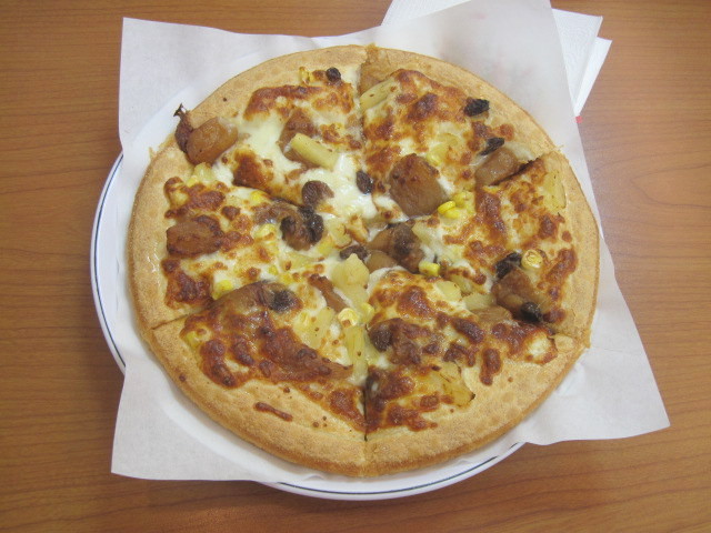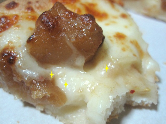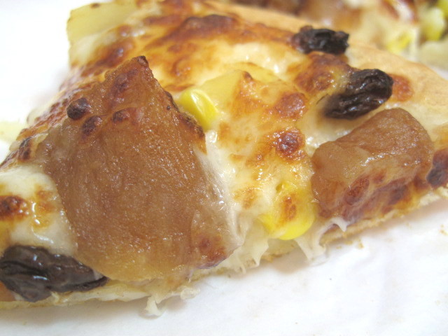 上鋪的是起司(乳酪)醬,因此,雖然加上口味偏甜的蘋果果肉、鳳梨、