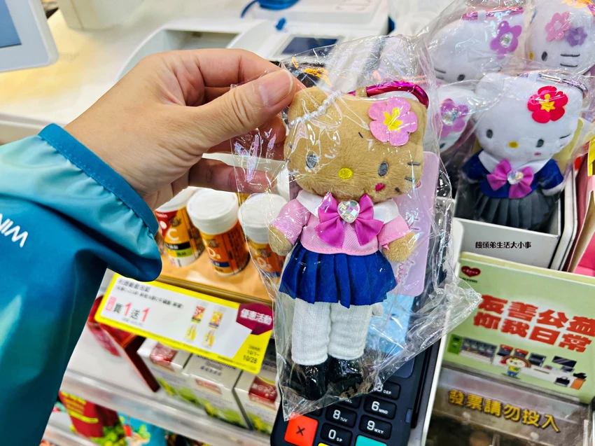 除了可愛的造景,這家便利商店更是Sanrio迷的天堂。貨架上擺滿限定周邊商品,包括Hello Kitty馬克杯、酷洛米抱枕、肉桂狗文具與各式吊飾,每一款都讓粉絲難以抗拒。不少人直呼「走進來就出不去了」,因為每個角落都充滿驚喜。更吸引人的是,店內不定期推出限定聯名商品與活動,像是季節限定的Kitty存錢筒、可愛購物袋與造型衛生紙,都成為熱門收藏品。對於想找可愛伴手禮或紀念品的人來說,這裡幾乎是必逛名單。
